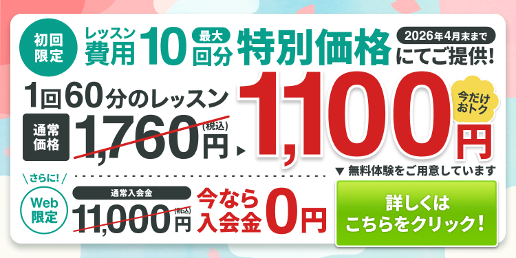 このページの下にある、無料体験レッスンお申し込みバナーから、またはお電話にてご予約を受け付けておりますので、お気軽にお申し込みくださいね♪