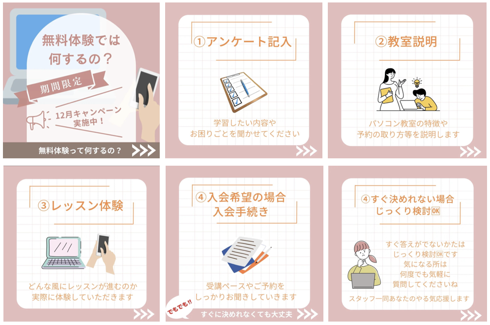 さて、今回はお問合せの時によく質問いただくパソコン教室の無料体験についてご案内します♪